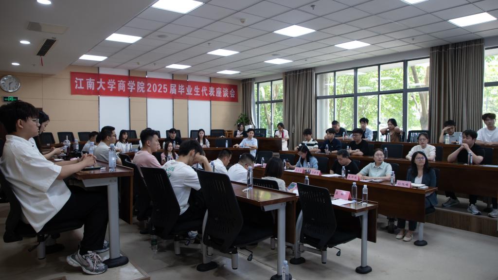 2025届毕业生代表座谈会在学院116会议室举办。院党委书记刘长青、院长浦徐进、党委副书记兼副院长孙小芳、副院长刘勇,各专业系主任,MBA中心、国际交流办相关负责人,毕业年级辅导员以及30余名本硕毕业生代表及留学生代表参加座谈会。