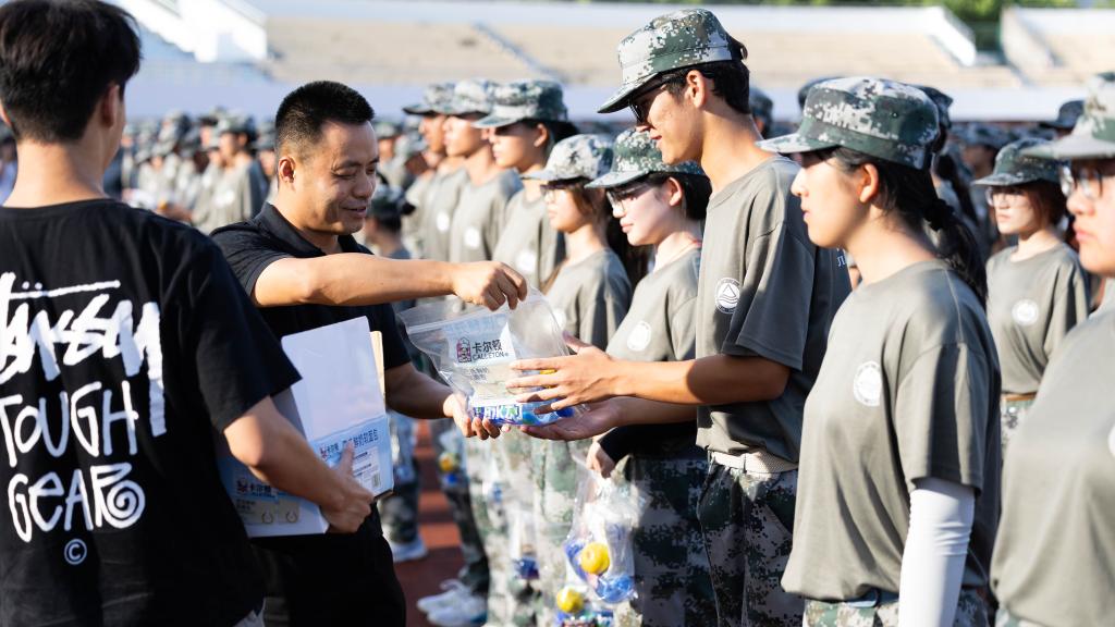 学院领导老师为参训学生分发精心准备的慰问品,并与同学们亲切交流。同学们有序领取,脸上洋溢着笑容。这份心意不仅为同学们带来清凉,更传递了学院对学生的深切关爱与期望。