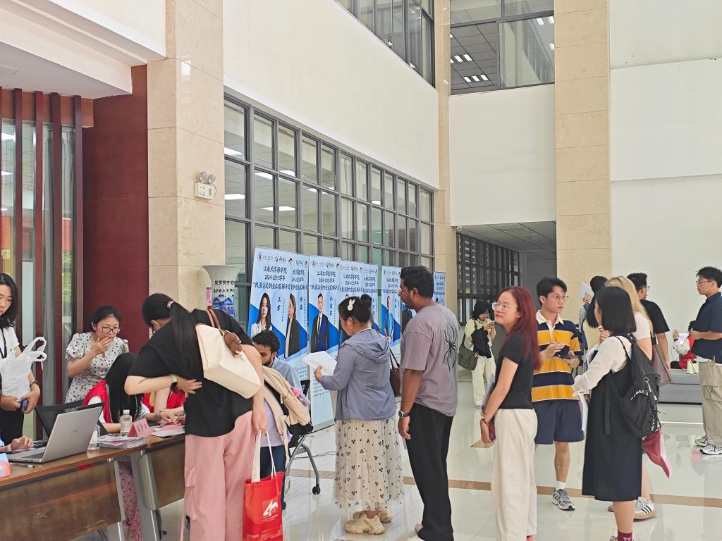 迎来了2025级160余名全日制研究生新生和25名留学生。他们从四面八方汇聚于此,开启学术新征程。早晨八点,迎新大厅早已准备就绪,处处洋溢着热情与活力。学生班助与志愿者们以饱满的精神状态投入工作,在身份核验、材料审核、信息注册等多个服务点位提供“一对一”精准引导。他们耐心解答疑问、细致讲解流程,用真诚的微笑和专业的服务为新生送上第一份来自江大商院的温暖。