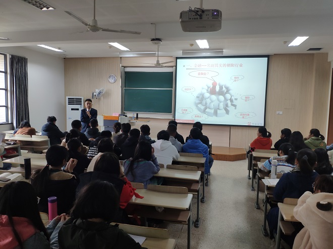 企业家辅导员、华泰证券股份有限公司苏州分公司总经理刘晓冰为2019级金融专业学生讲授课程